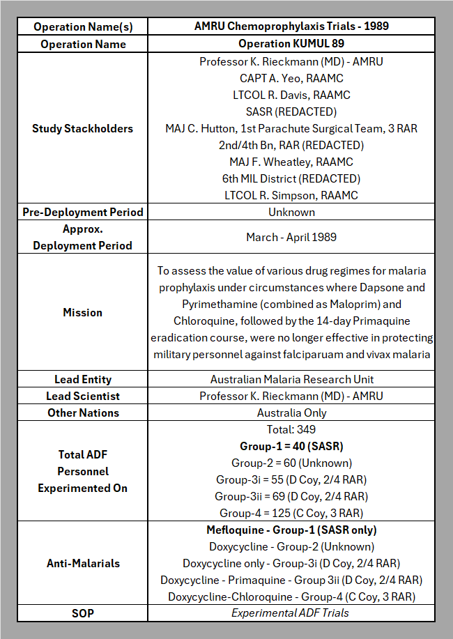 Mefloquine Mission Log: ADF Trials – Op KUMUL 89 (SASR) – PNG (1989)