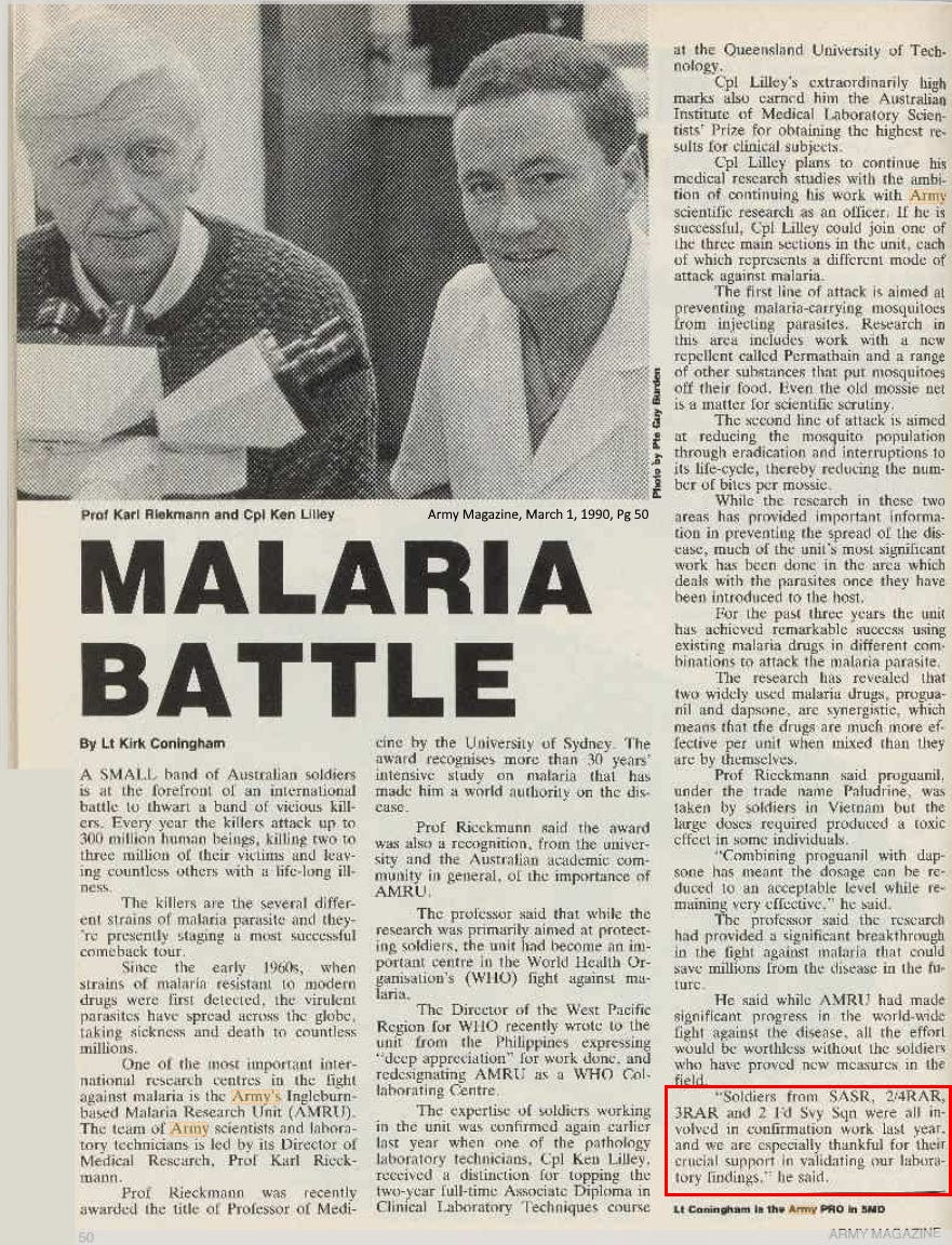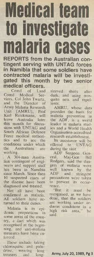 Army Newspaper (20.07.1989) Medical team to investigate malaria cases [https://trove.nla.gov.au/newspaper/page/29910028] Page accessed 2.09.2025