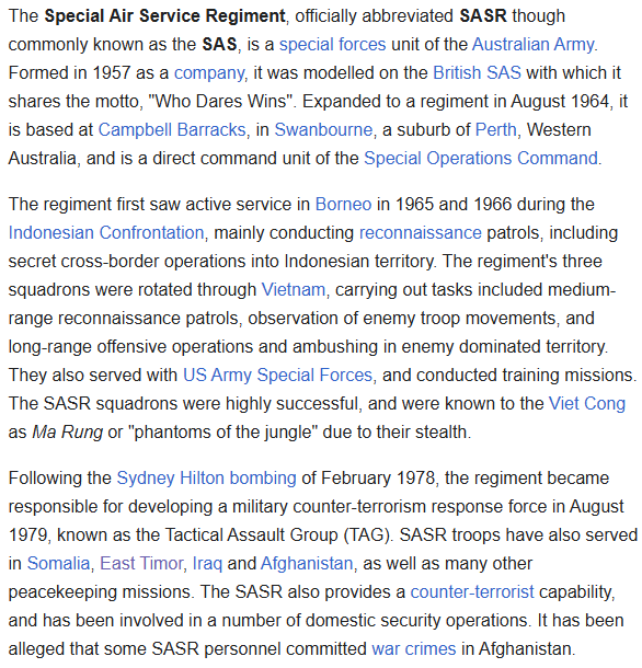 Wikipedia (2025) Special Air Service Regiment [https://en.wikipedia.org/wiki/Special_Air_Service_Regiment] Page accessed 2.09.2025